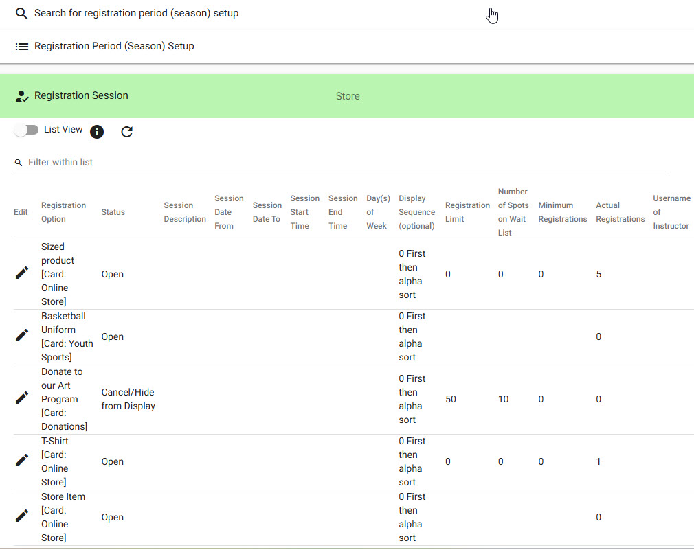 For detailed instructions on how to set up and create a Registration Period and Sessions, click here. This is useful if store items/uniforms will be sold amongst other options, such as camps and classes.