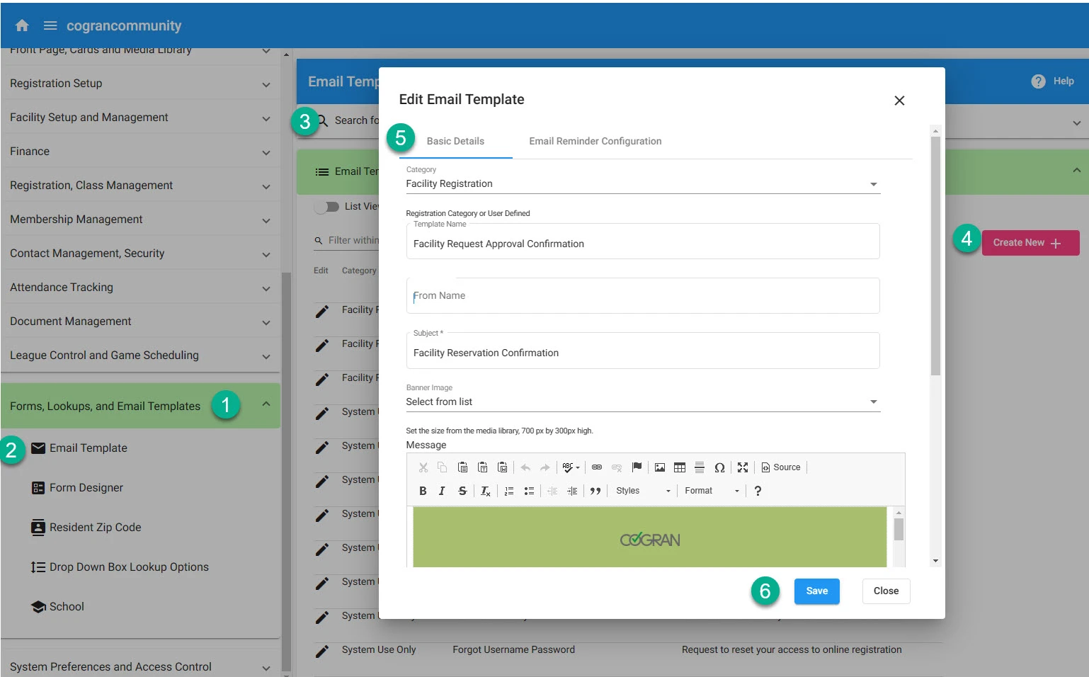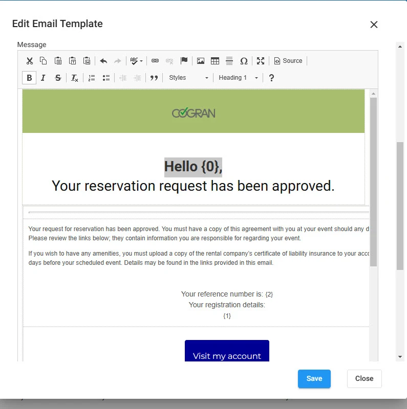 Now, this template will be available to you to use in the facility request approvals process, or to send to an approved reservation.