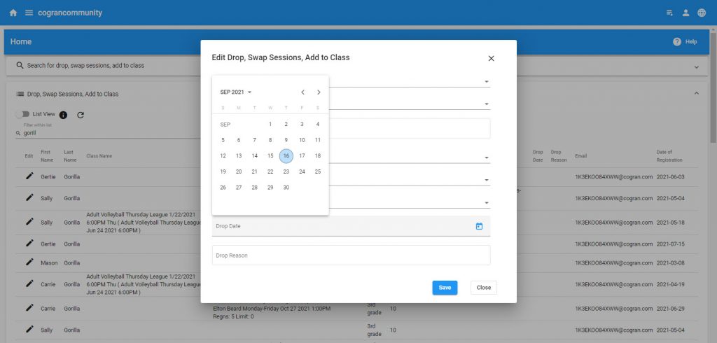 Quicklinks>Drop, Swap, Add to Class