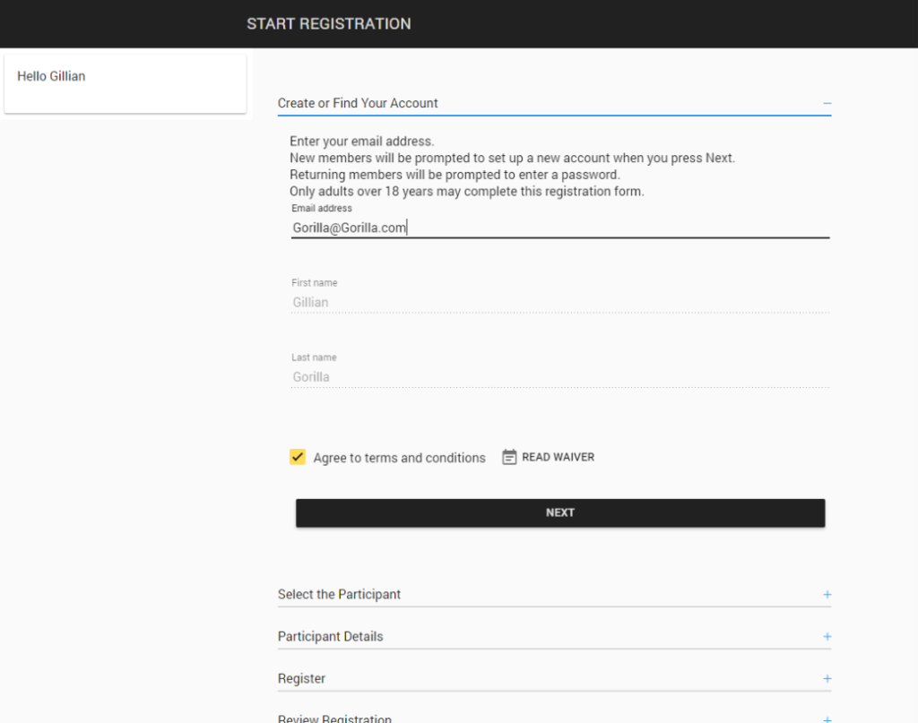 • On tab one, find: Registration Waiver  (Scroll down)